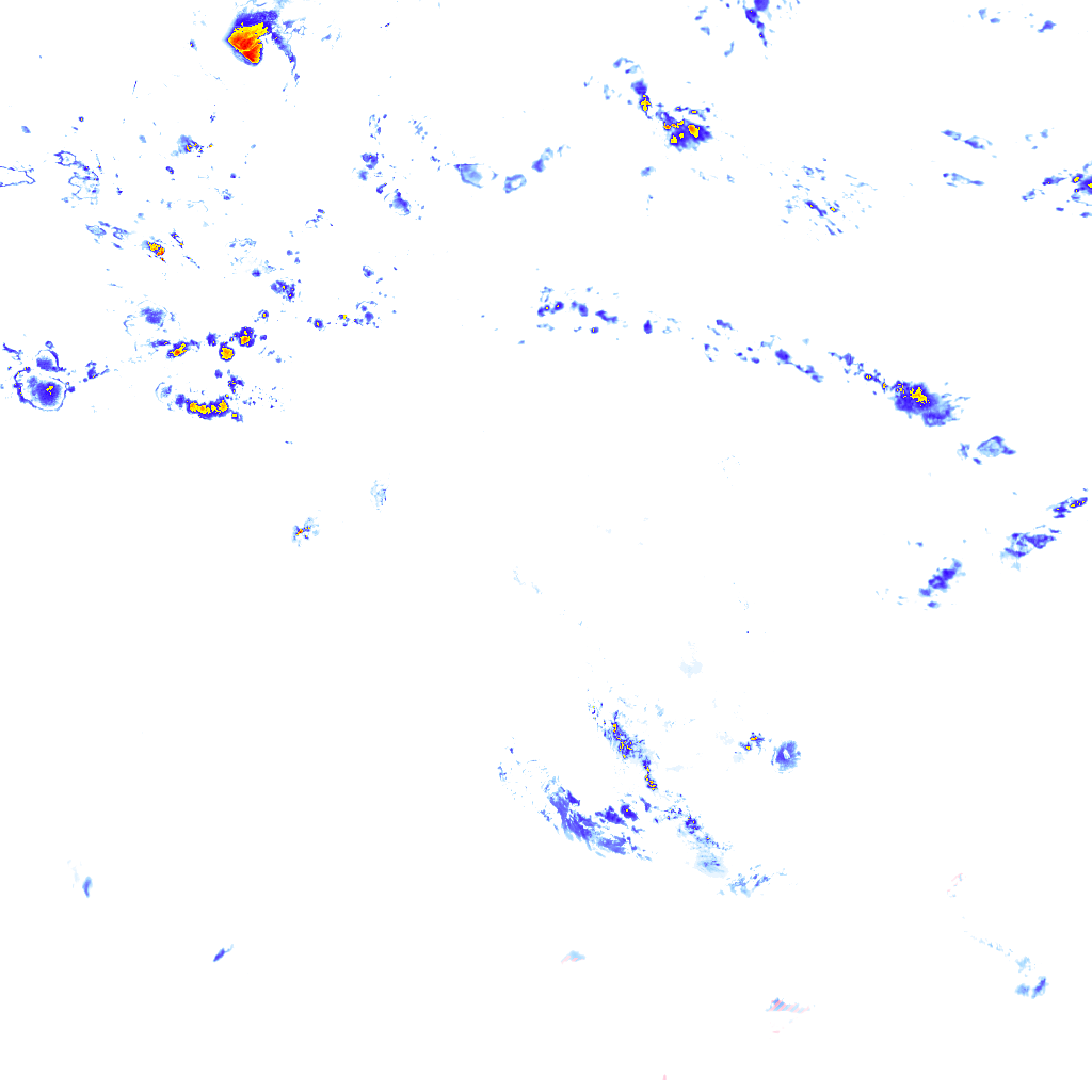 Op deze radar is de verwachting te zien voor de komende 2 of 3 uur afhankelijk van het land. We tonen hiermee hoe de aanwezige buien en regenzones de komende uren verder trekken, mits ze blijven zoals ze nu zijn. Hou dus rekening met het ontstaan van nieuwe buien en verandering van bestaande buien.