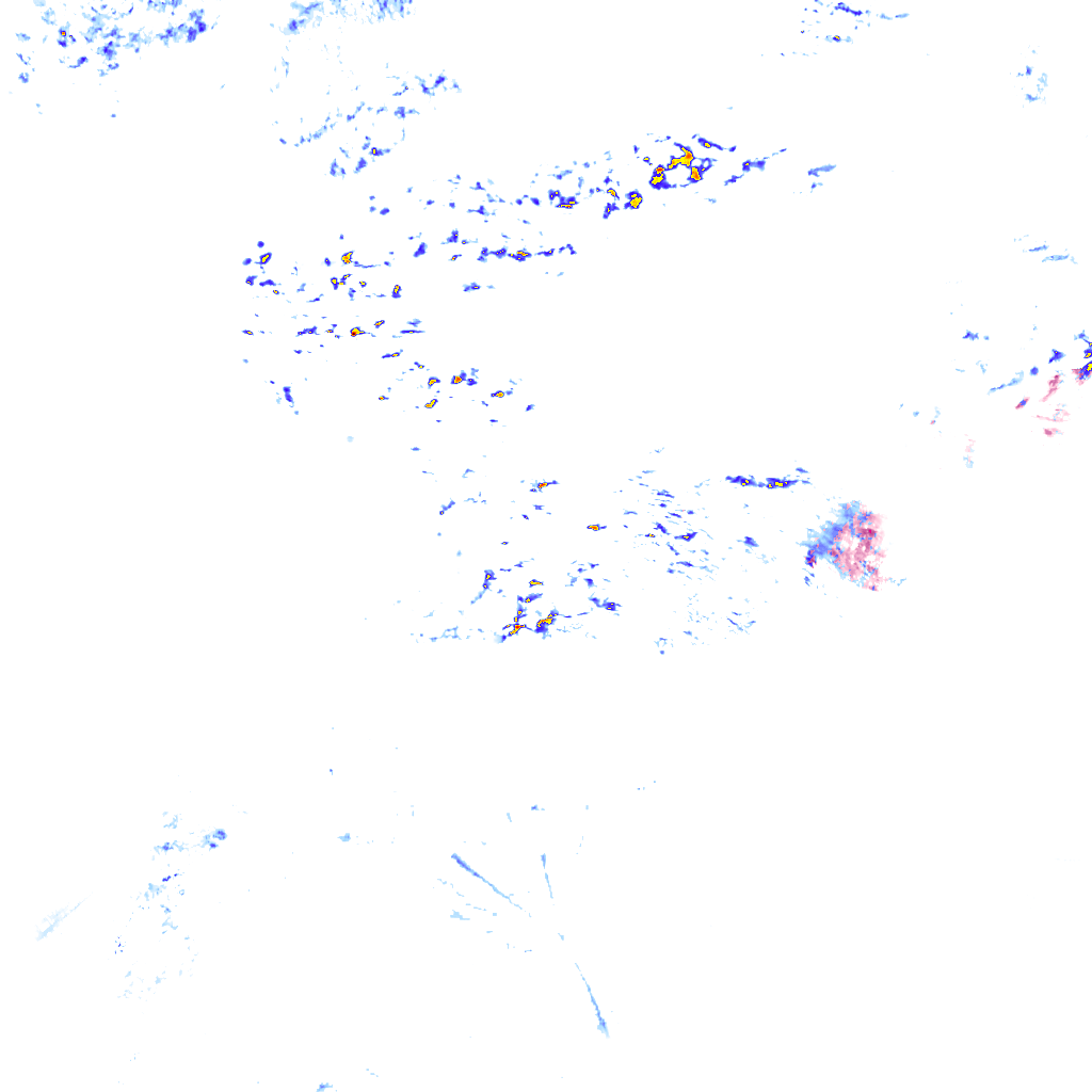 Op deze radar is de verwachting te zien voor de komende 2 of 3 uur afhankelijk van het land. We tonen hiermee hoe de aanwezige buien en regenzones de komende uren verder trekken, mits ze blijven zoals ze nu zijn. Hou dus rekening met het ontstaan van nieuwe buien en verandering van bestaande buien.