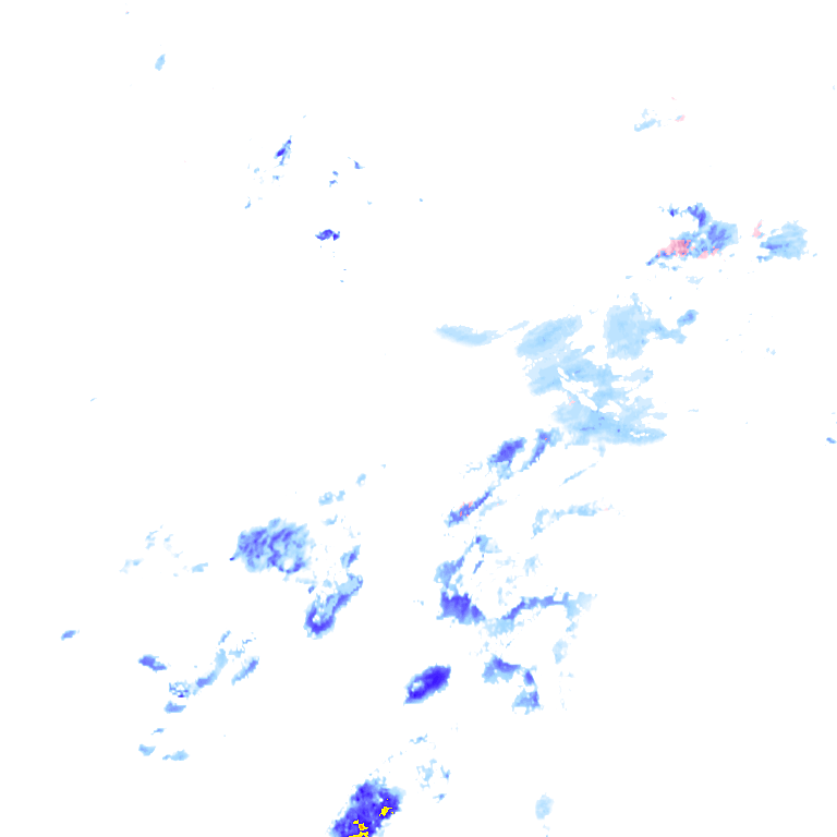Op deze radar is de verwachting te zien voor de komende 2 of 3 uur afhankelijk van het land. We tonen hiermee hoe de aanwezige buien en regenzones de komende uren verder trekken, mits ze blijven zoals ze nu zijn. Hou dus rekening met het ontstaan van nieuwe buien en verandering van bestaande buien.